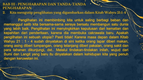 penglihatan ini sebuah utopia? Pasti tidak! Karena masa depan dalam Kitab