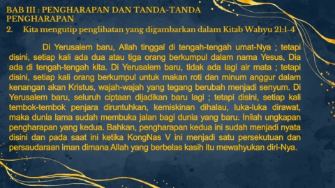 2. Kita mengutip penglihatan yang digambarkan dalam Kitab Wahyu 21:1–4
