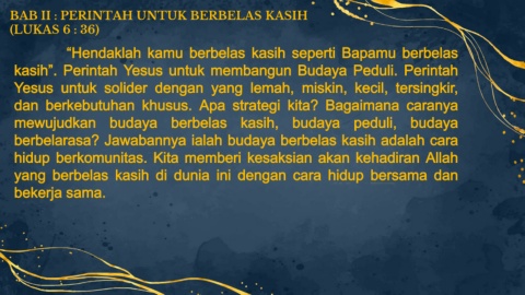 kasih”. Perintah Yesus untuk membangun Budaya Peduli. Perintah