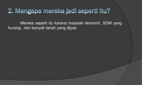 Mereka seperti itu karena masalah ekonomi, SDM yang kurang , dan banyak tanah yang dijual.