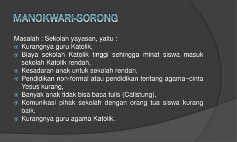 Kurangnya guru agama Katolik.