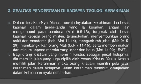 e. Dalam tindakan-Nya, Yesus mewujudnyatakan kerahiman dan belas