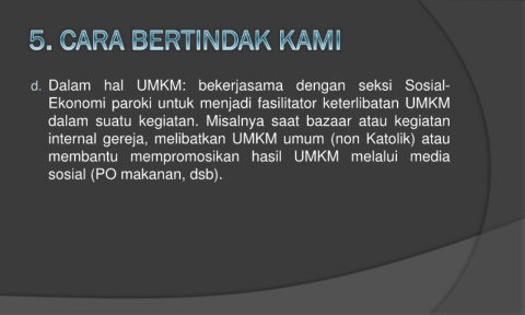 d. Dalam hal UMKM: bekerjasama dengan seksi Sosial-