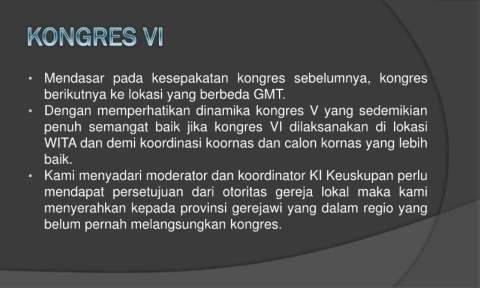 • Mendasar pada kesepakatan kongres sebelumnya, kongres